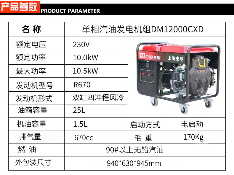 * 表示必填采購:單相10kW小型汽油發電機組DM12000CXD