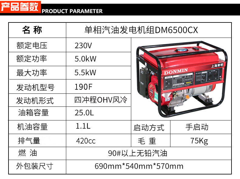 * 表示必填采購:單相 5kW小型汽油發(fā)電機(jī)組 DM6500CX手動