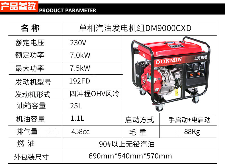 * 表示必填采購:?jiǎn)蜗?kW小型汽油發(fā)電機(jī)組DM9000CXD