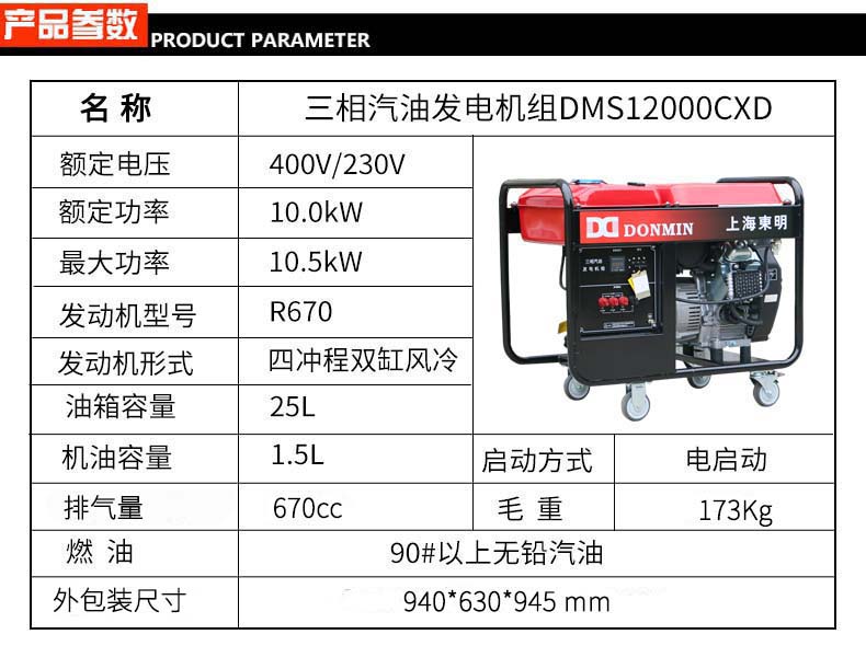 三相 10kW小型汽油發(fā)電機(jī)組 DMS12000CXD